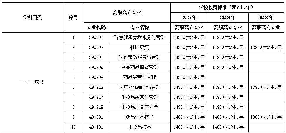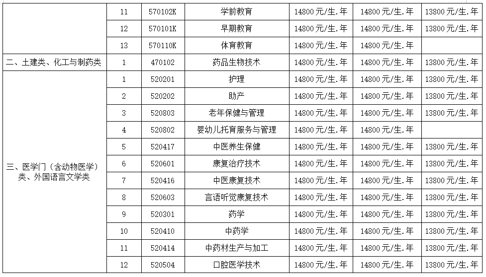 现将长春东方职业学院 2025-2026 年度收费标准公布如下: